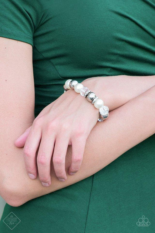 Paparazzi Camera Chic White Stretch Bracelet - Fashion Fix Fiercely 5th Avenue October 2018